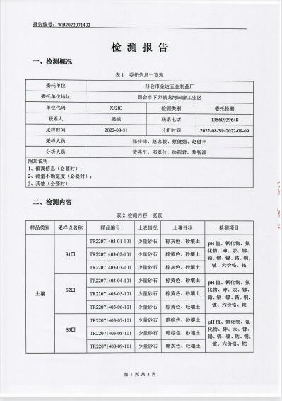 四會市金達(dá)五金廠土壤檢測報告