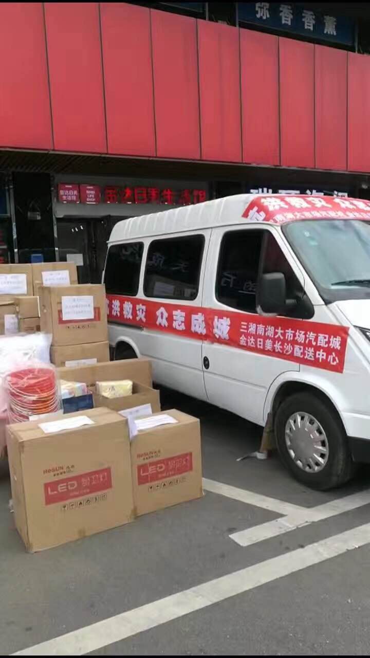 金達(dá)日美長沙配送中心,親自將金達(dá)日美產(chǎn)品送往災(zāi)