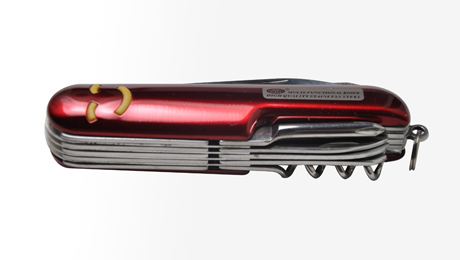 功能:1、開罐器 2、剪刀 3、大刀 4、十字螺絲刀 5、指甲銼(指甲除垢器) 6、螺旋開瓶器