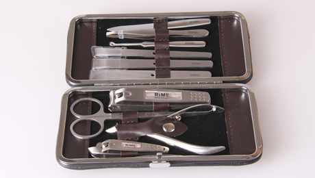 包裝規(guī)格:156mm*87mm*27mm 單套重量:253.8g 材質(zhì):PU+430不銹鋼 配件:RMT630E指甲鉗、美容剪、腳鉗、斜口指甲鉗、指甲銼、耳挖、眉夾、