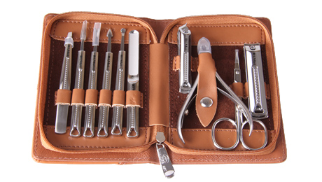 包裝規(guī)格:143mm*98mm*31mm 單套重量:258g 材質(zhì):PU+420不銹鋼+鋅合金 配件:RM6432指甲鉗、美容剪、腳鉗、斜口指甲鉗、指甲銼、耳挖、眉夾、暗瘡針